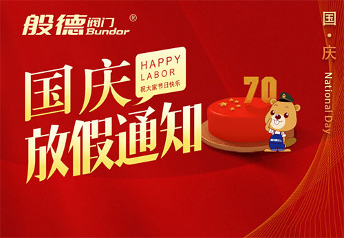 各位般德客戶、合作伙伴:中華人民共和國即將迎來70歲華誕,根據國務院關于法定節假日的規定,結合我公司實際情況,般德閥門科技有限公司2019年國慶節假期安排如下: