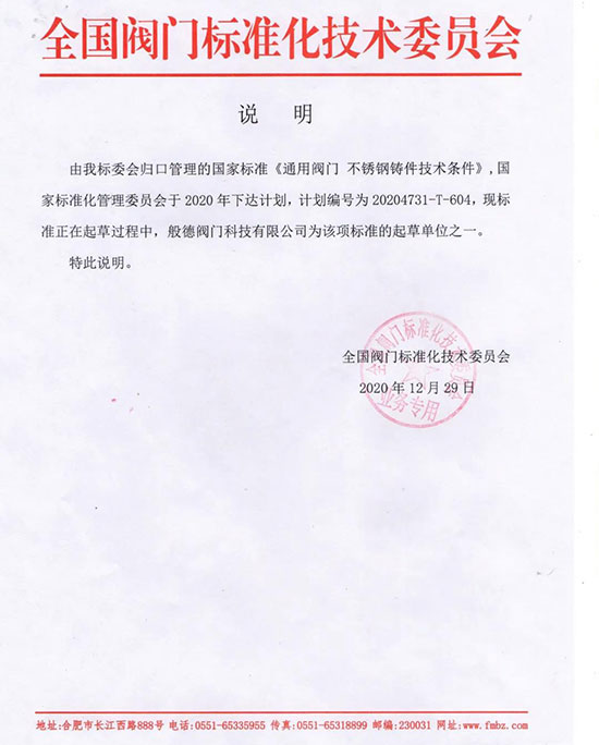 圖|般德閥門(mén)為國(guó)家標(biāo)準(zhǔn)《通用閥門(mén) 不銹鋼鑄件技術(shù)條件》起草單位之一