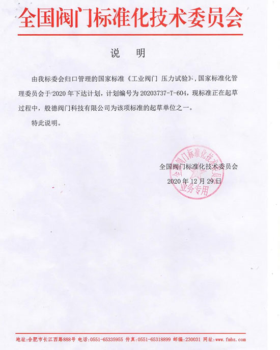 圖|般德閥門(mén)為國(guó)家標(biāo)準(zhǔn)《工業(yè)閥門(mén) 壓力試驗(yàn)》起草單位之一