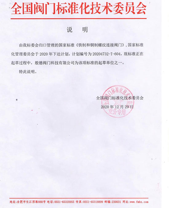 圖|般德閥門(mén)為國(guó)家標(biāo)準(zhǔn)《鐵制和銅制螺紋連接閥門(mén)》起草單位之一