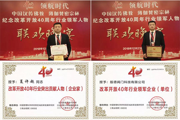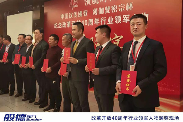 般德閥門科技有限公司董事長(zhǎng)夏許超先生獲“改革開放40年行業(yè)突出貢獻(xiàn)企業(yè)家”榮譽(yù)稱號(hào),般德閥門科技有限公司獲“改革開放40年行業(yè)領(lǐng)軍企業(yè)”榮譽(yù)稱號(hào)。